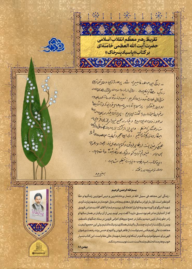 متن تقریظ رهبر انقلاب اسلامی بر این کتاب به شرح زیر است: