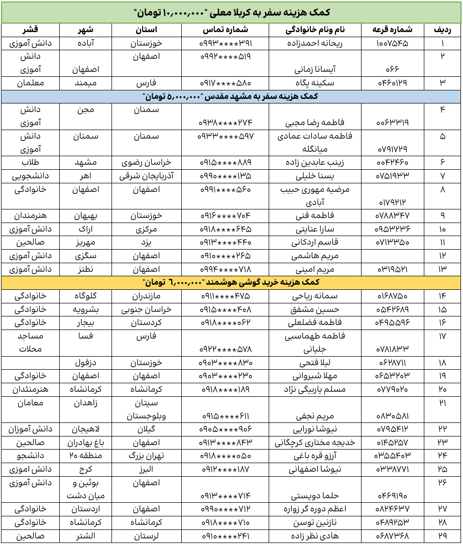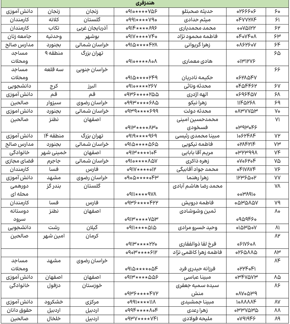 با سپاس از همراهی ارزشمند و گستردهی تمامی شرکتکنندگان محترم در پویش سراسری کتابخوانی «خط امین»، که با استقبال چشمگیر علاقهمندان به کتاب و مطالعه مواجه شد و همچنان تداوم دارد؛ بدینوسیله اسامی برندگان کشوری این پویش در بخش ارسال آثار کتابهای:«هواتو دارم»، «پاییز آمد»، «بیست سال و سه روز»، «معبد زیرزمینی»، «آخرین فرصت» و «مجید بربری» به شرح زیر اعلام میگردد: